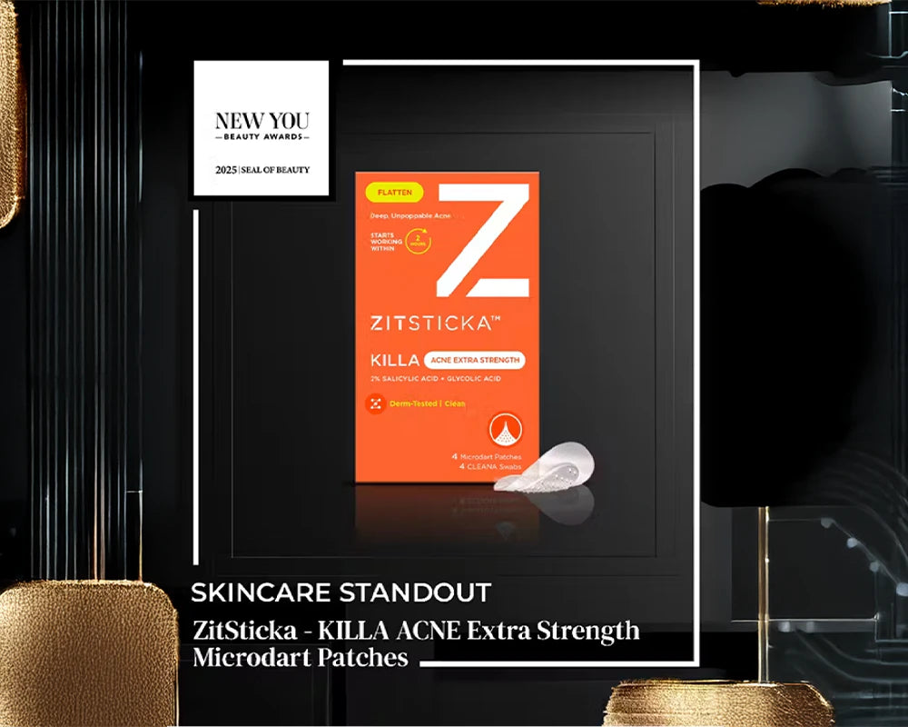 Just crowned Skincare Standout – Seal of Beauty at the NEW YOU Beauty Awards 2025—an annual celebration spotlighting the most effective, innovative, and trusted products in beauty—ZitSticka KILLA™ ACNE Extra Strength Microdart Patches deliver active ingredients right into blemishes for fast, visible results.